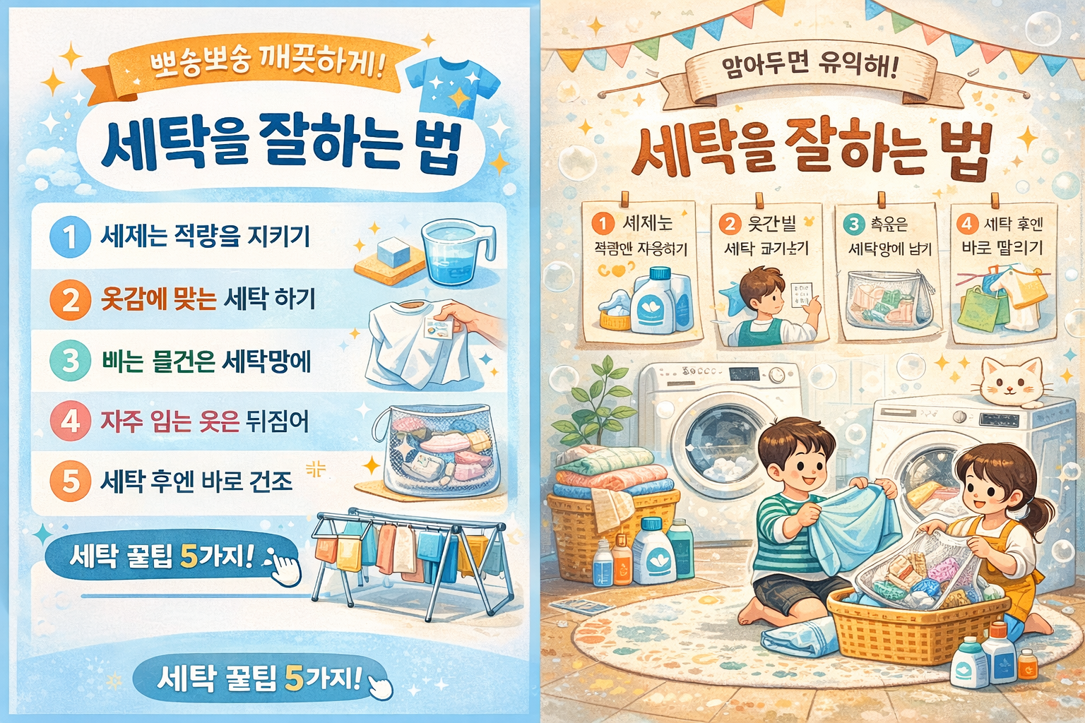 세탁으로 옷이 깨끗해지면 사람의 마음도 깨끗해집니다.